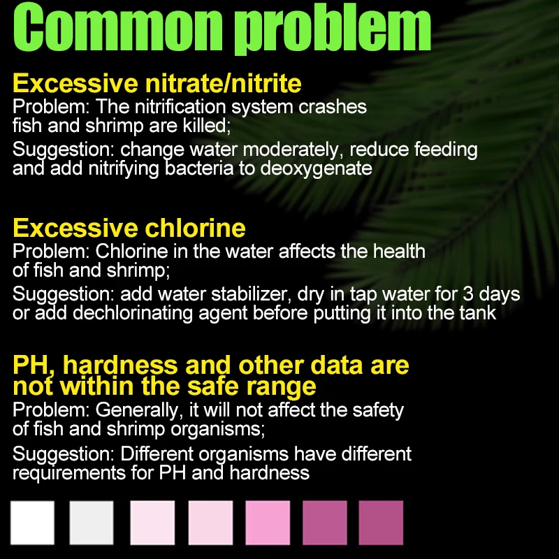 7 in 1 AQUARIUM WATER TEST KIT - our fish tank strips total have 7 elements: Nitrate, Nitrite, General Hardness, Free Chlorine,PH, Carbonate,Total Alkalinity, testing your fish tank if it is healthy water.
