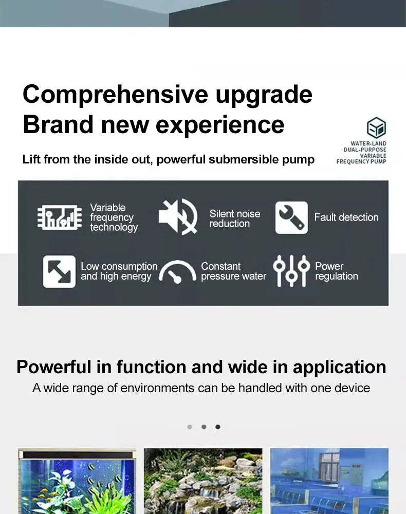 Product characteristics: Large flow, high head, sinusoidal wave frequency conversion technology