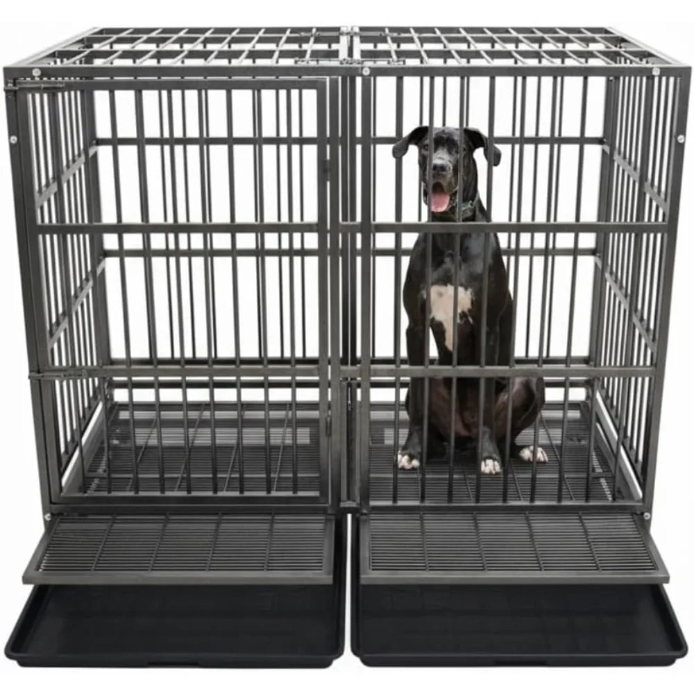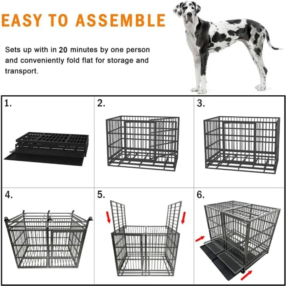 Heavy-Duty 54/48/42/38 Inch Dog Crate with Wheels, Indestructible Steel Kennel for Indoor Use, Ideal for High Anxiety Dogs